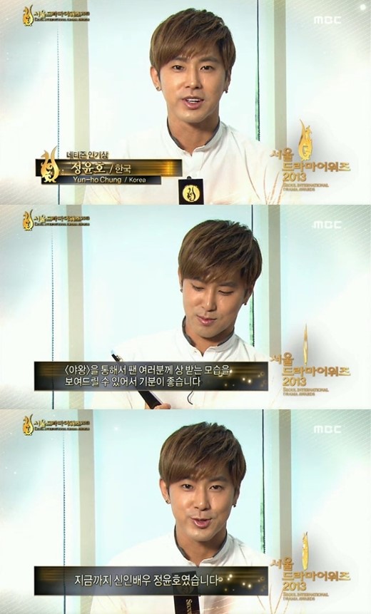 チョン·ユンホは5日午後、ソウル奨忠洞国立劇場日登劇場で開かれた'ソウルドラマオウォーズ2013'授賞式で、SBSドラマ"夜王"でネチズン人気賞を占めした。