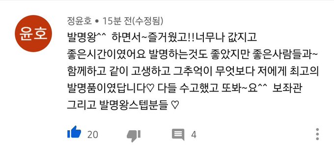 ”発明王” 最終回ユノのコメント(日本語意訳)