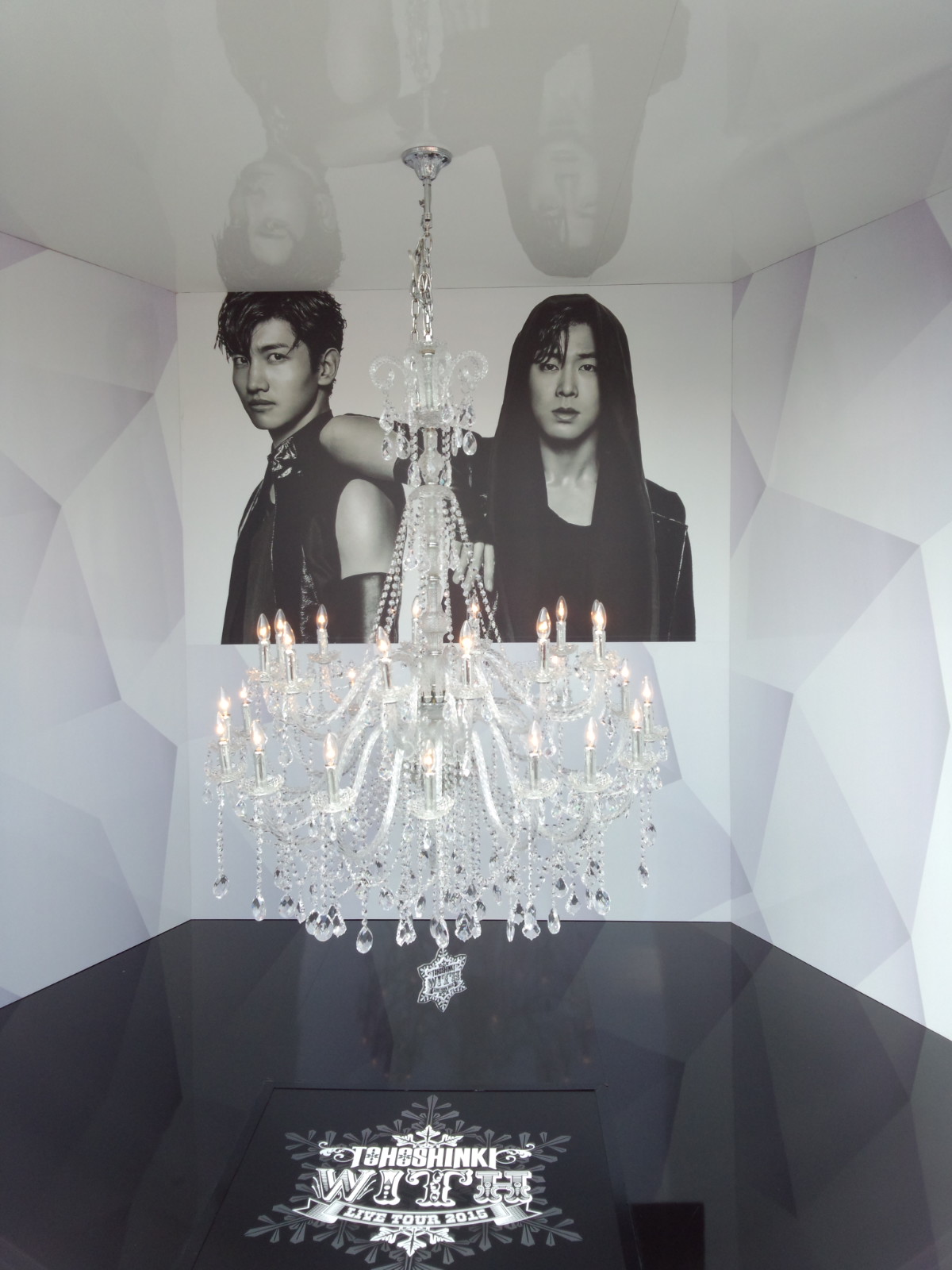 本編折り返し地点のMCでは、「このブリッジどうですか?」「笑ってる皆さんの顔を見て、すごくホッとしました。映画館の皆さんも一緒に楽しんでくれてると思います」と和やかな雰囲気に。最新アルバムと今回のツアーのタイトルに掲げた「WITH」について、チャンミンは「今まで僕たち東方神起とともに皆さんが歩んできたこと、これからも何があっても変わらずに歩んでいきましょうという意味が入ってるんです。『WITH』の中に入ってる大きな愛をテーマにしました」と説明する。また、日本デビュー10周年という話題になり、「10周年って決して短い時間ではないからすごいことだと思います」とチャンミン、「小さいステージからだんだん上がってきてこのドームのステージに立つことができました。それはこの2人だけじゃなくて、見えないところでがんばっているスタッフさんと、ここにいる皆さんのおかげだと思います。本当にありがとうございます」とユンホが感謝を述べる。さらにこの日はSMエンターテインメント会長のイ・スマンが来ていることも明かし、2人は「東方神起生みの親」に改めて感謝を伝えていた。