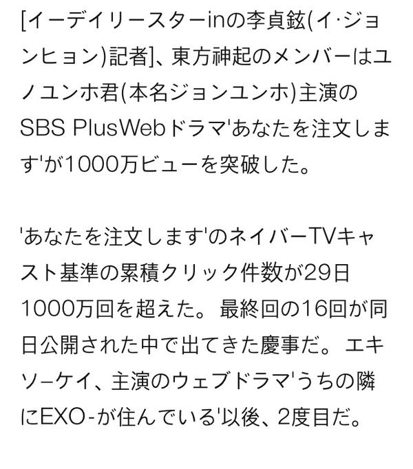 終映'ユノ・ユンホ Webドラマ 'あなたを注文します'、 1000万ビュー突破