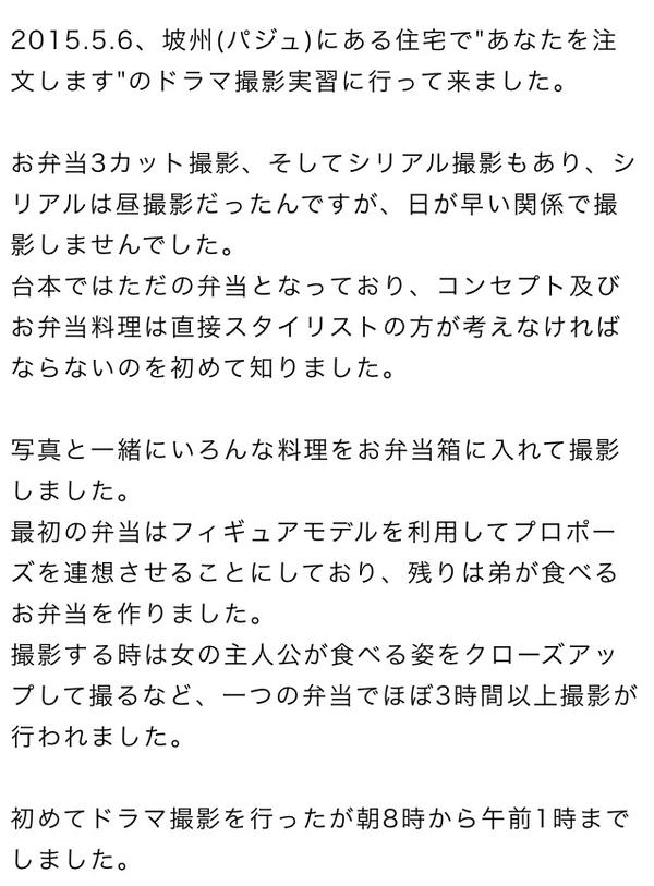 내일 아침 일찍부터 3일간 촬영 明日、朝早くから撮影なので、頑張らなきゃ! !