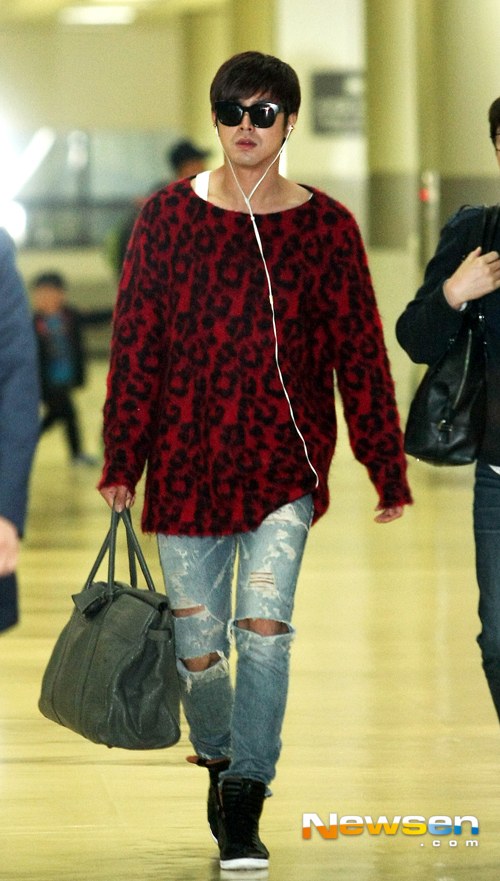 東方神起ユノ·ユンホ 'ヒョウ柄セーターに輝く外貌'(空港ファッション)