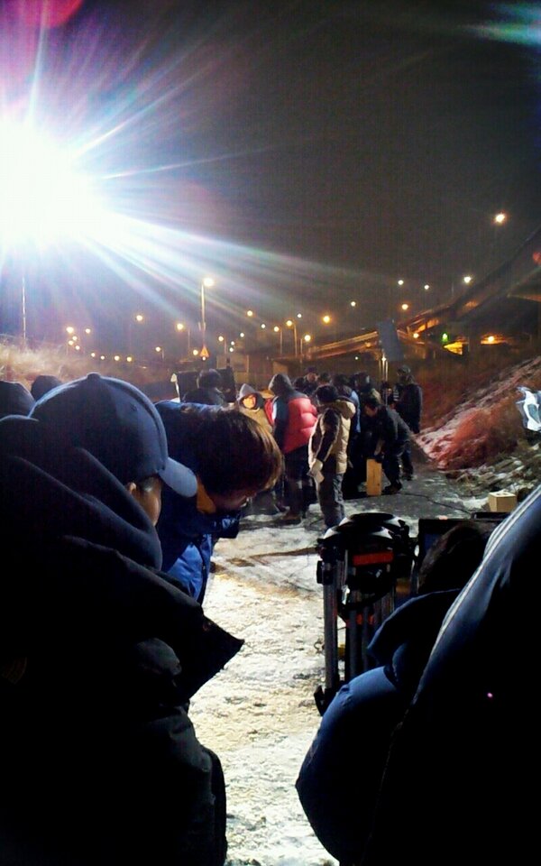 赤とブルーのダウンジャケットはユノみたいね!凄く寒そ~う