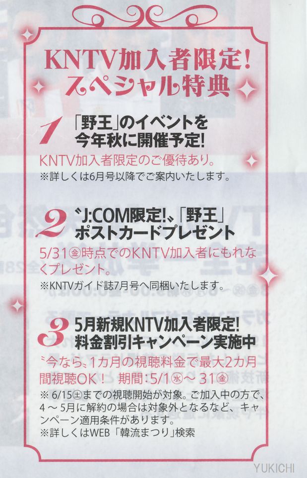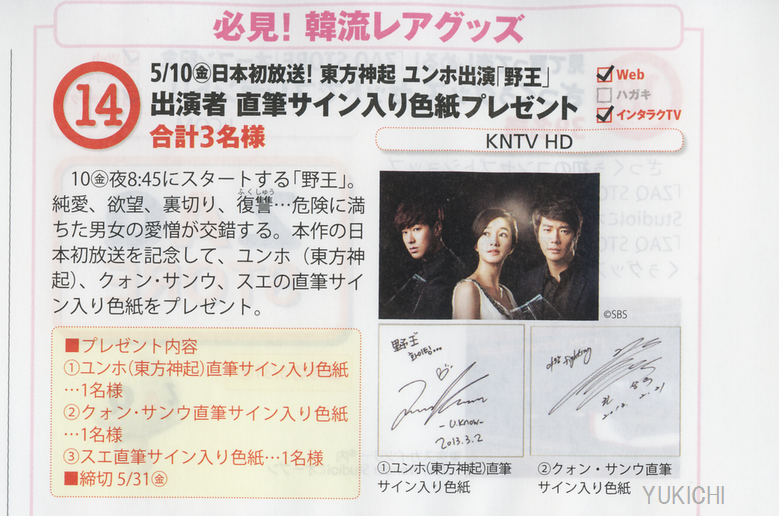 JCOM(加入者)"野王"出演者の直筆サインプレゼント - ユンホサイン