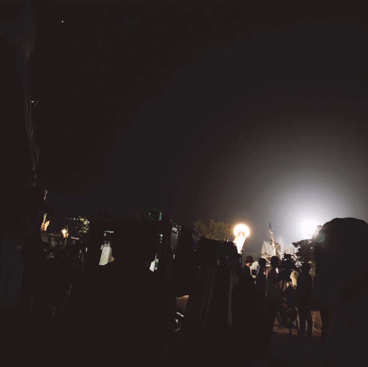 夜中に遊園地で撮影