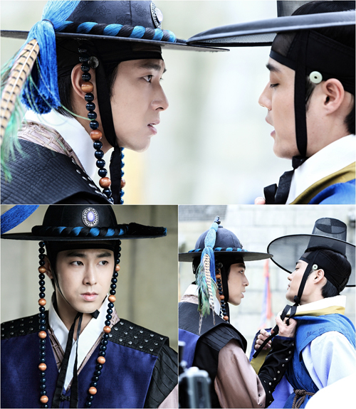 公開されたスチールでは、チョン・ユンホが親友であるデホ(イ・ハユル)の喉首をつかんでいて、緊張感を漂わせている。今すぐにでもレーザー光線が放たれそうに強烈なまなざし、威圧的に襟首をつかんで怒りを表わしているが、いつも着用している道袍や冠ではない武官服を着ていて、さらに注目を集めた。