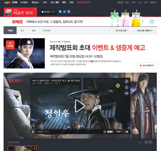 特に、今回の<ヤギョンクン日誌>製作発表会は29日、2時からiMBCとポータルサイト、ダウムコミュニケーションを通じて、リアルタイムのオンライン生中継され、製作発表会現場には、一般の人の申請者5人を招待する特別なイベントが繰り広げられる予定なのでより一層関心を集めている。