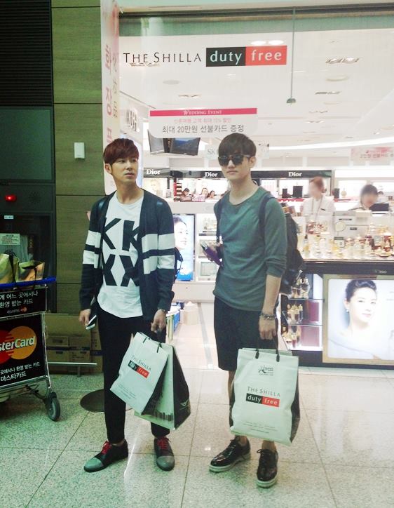 新羅免税店化粧品&香水店で買い物をして出てくる姿!ユンホさんとチャンミンさんのショッピングバッグには何が入っているか知りたいですね!