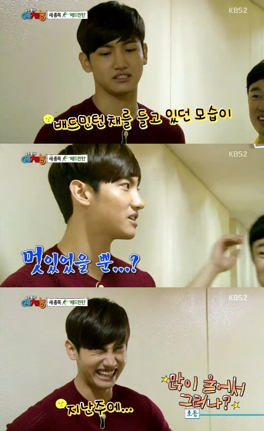 しかし、チャンミンは、 "バドミントンのままを持っている姿が格好よかっただけだ"と釈明した。この中で、自分が素晴らしいという事実を強調して笑いを誘った。一方この日カン·ホドンはチャンミンに"肉が落ちた。たくさん泣いてそうなのか?"とからかった。先週チャンミンがボウリング競技で敗れた後嵐の涙を流したから。チャンミンは"ご飯もまともに食べられなかった"と認めた。