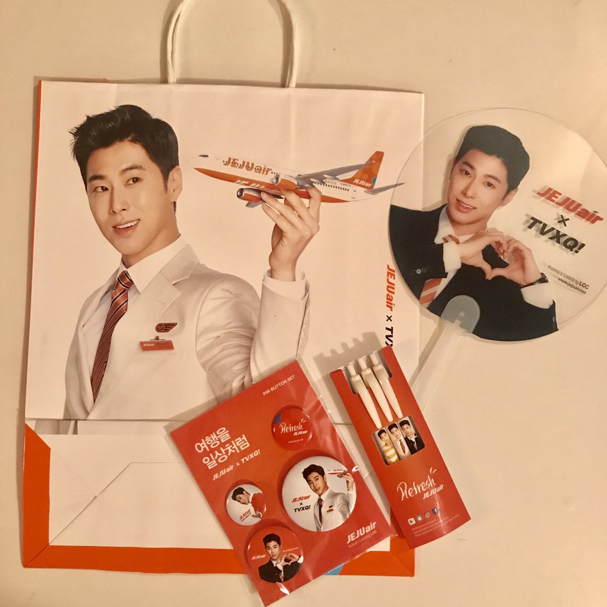 抽選①アプリ会員登録で1回目の抽選。紙袋に入ったオリジナルグッズ3点(うちわ+ボールペン+缶バッジ) やユノジェットモデルなどが当たる。※3点セットはそこそこの当確率