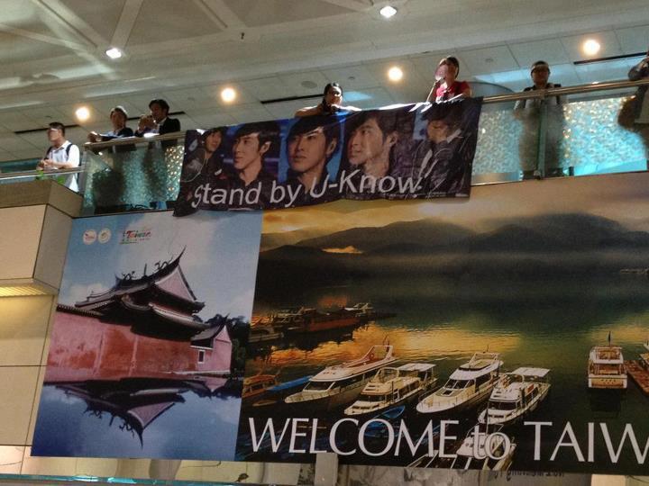 空港の様子&台湾カシオペア東方応援グッズ台湾のユンホファンサイトであるStand by Uknowで空港には歓迎の垂れ幕