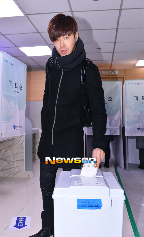 ユノ·ユンホが12月19日午前、ソウル江南区清潭洞住民センター第1投票所で第18代大統領選挙投票に乗り出した。ユノ·ユンホが投票ブースから出て投票箱に歩いてきている。この日キム·ジェドンをはじめ、カン·ホドン、ユ·ジェソク、キム·ジェドン、イ·ヒョリ、ノ·ホンチョル、オム·ジョンファ、ヒョンビン、イ·ビョンホン、イ·ドンウクなど多くの芸能人たちが投票に乗り出す。
