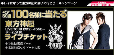 A賞:東方神起LIVE TOUR 2012〜TONE〜ドーム公演のライブチケット50組100人