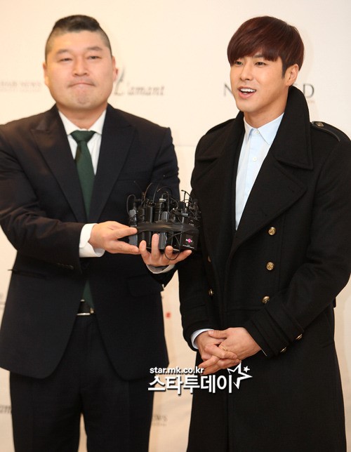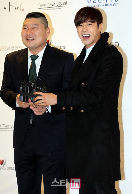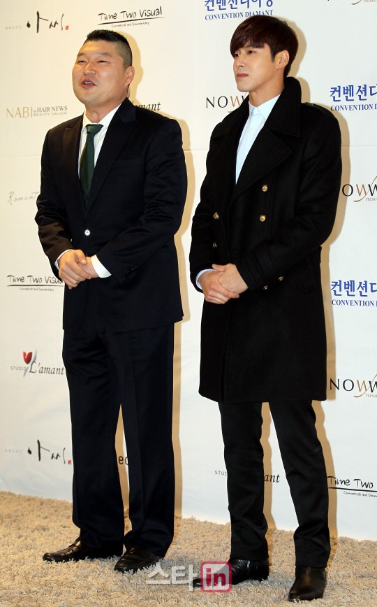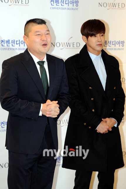カン·ホドン - ユンホ `誰よりも幸せな結婚生活してください`コメディアンカン·ホドン(左)と歌手ユンホ(ユノ)が16日、ソウル大峙洞コンベンションディアマンで開かれた放送ホン·ロッキとモデルのキムアリンさんとの結婚式に参加してポーズを取っている。
