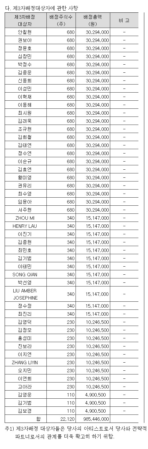 SMは今回の有償増資を会社と所属アーチスト パートナー容易関係を 強化し、所属芸能人増資参加を通じた企業 ビジョンと 成長を 共有して積極的に参加することにしようと決めた。