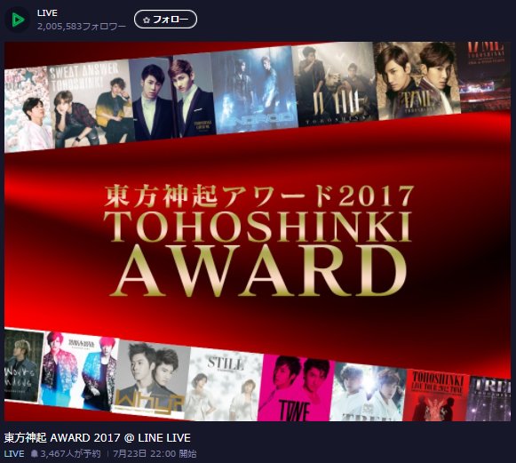 【向山毅出演決定!!】2017.7.23 22:00〜 LINELIVE「東方神起アワード」