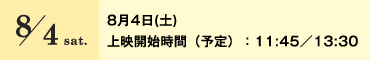 2012年8月4日(土) 上映開始時間(予定):1回目11:45~/2回目 13:30~