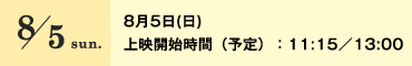 2012年8月5日(日) 上映開始時間(予定):1回目11:15~/2回目 13:00~
