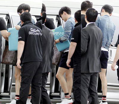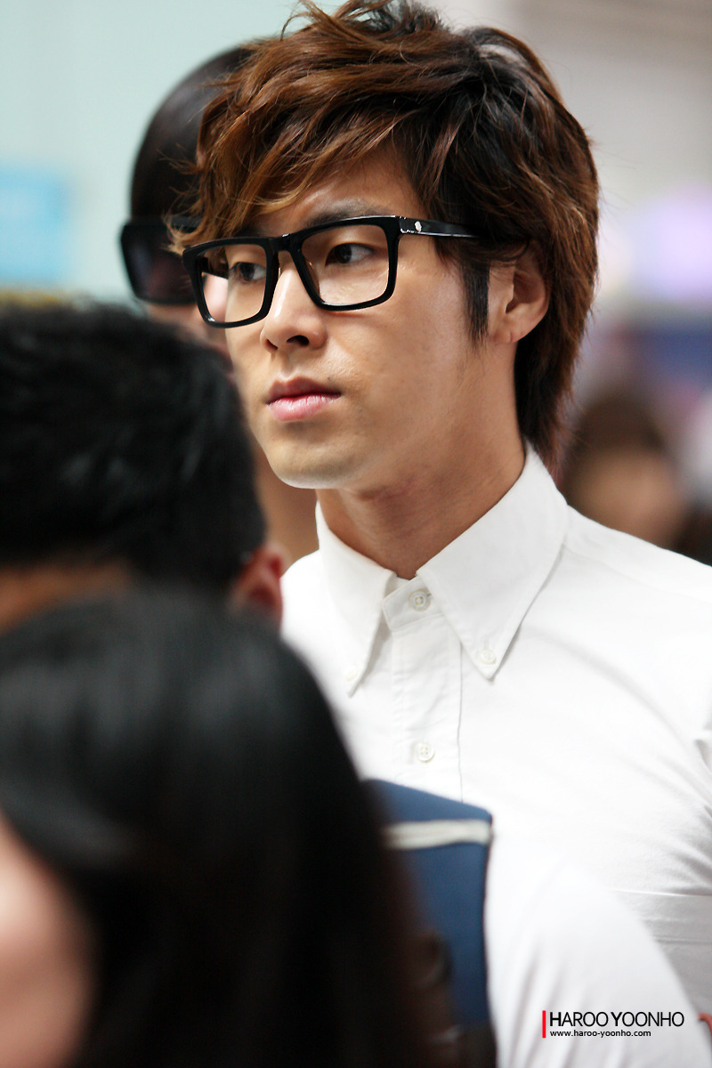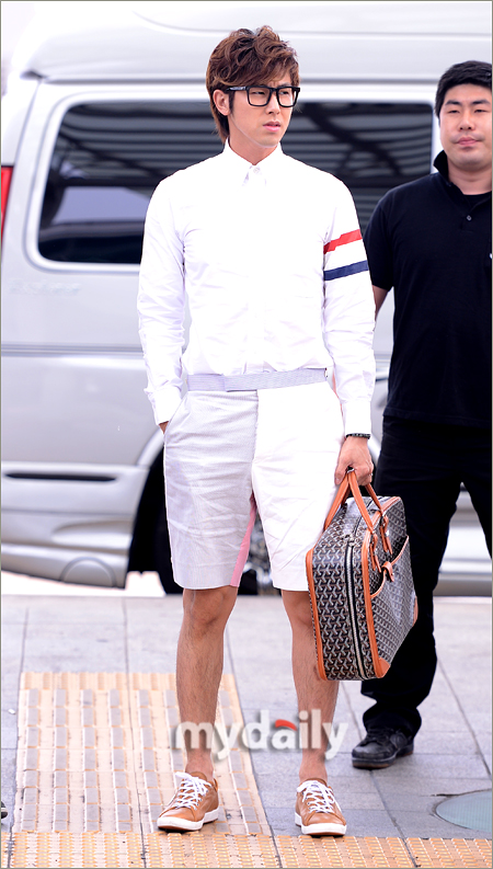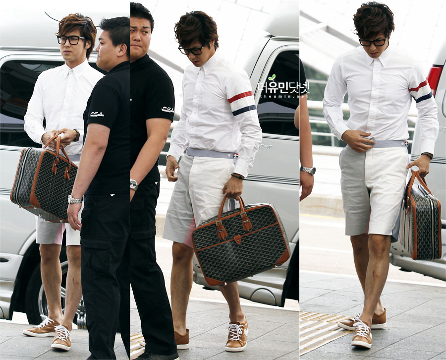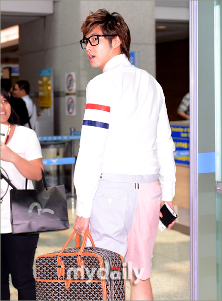 6/22出国・・・空港写真と記事[MDフォト]ユノ・ユンホ'半ズボン・黒縁メガネ、ぱっちり空港ファッション'