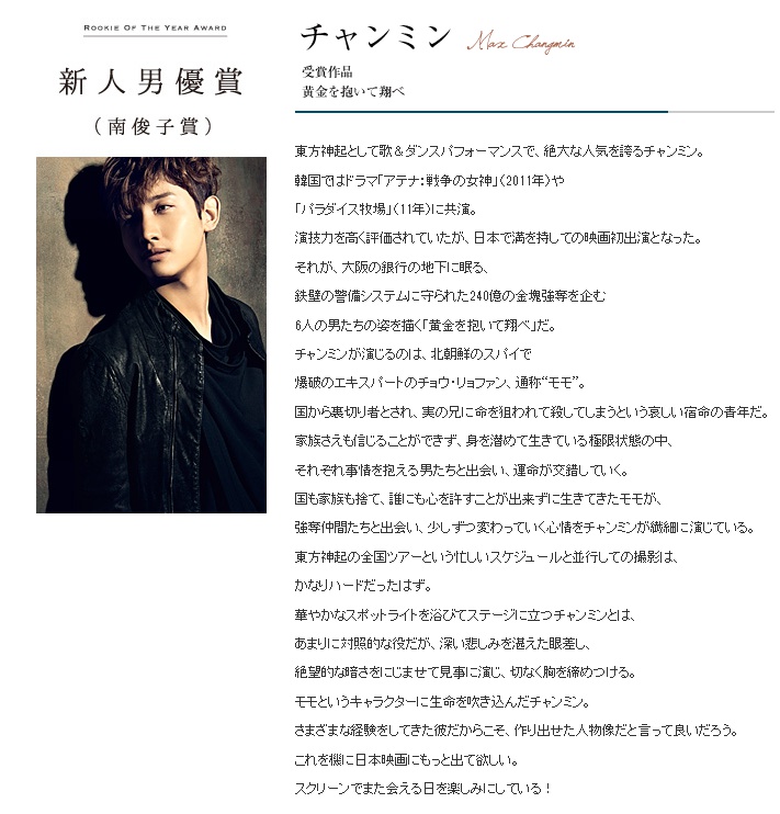 第22回日本映画批評家大賞受賞者紹介中新人男優賞チャンミン