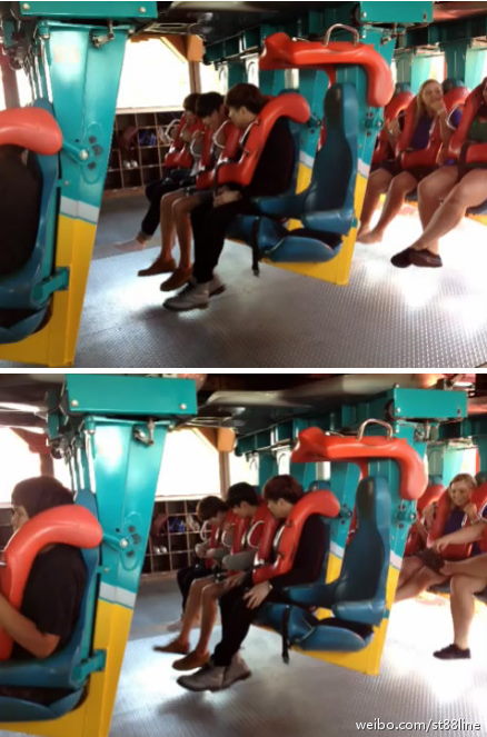 Knott's Berry Farm の遊具に乗るチャンミン・・・ソース:ウムチャル&写真(小萌de旭妃、st88line)