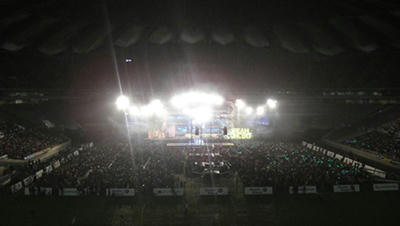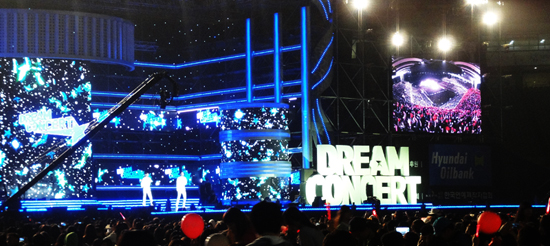 舞台上東方神起と電光掲示板に映ったファンの皆さんの様子です〜^ ^