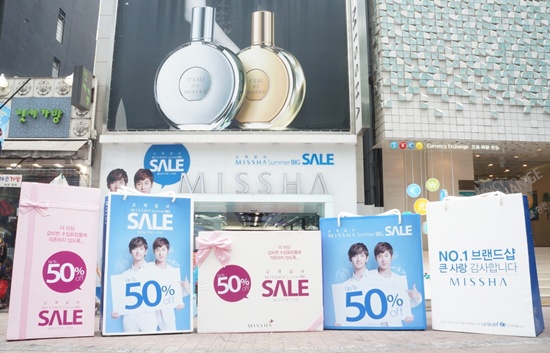 特にミシャのモデルである東方神起の写真が入った超大型紙袋は韓国人だけでなく、多くの海外観光客に "動くポトウォル"で注目され、さらに注目を集めている