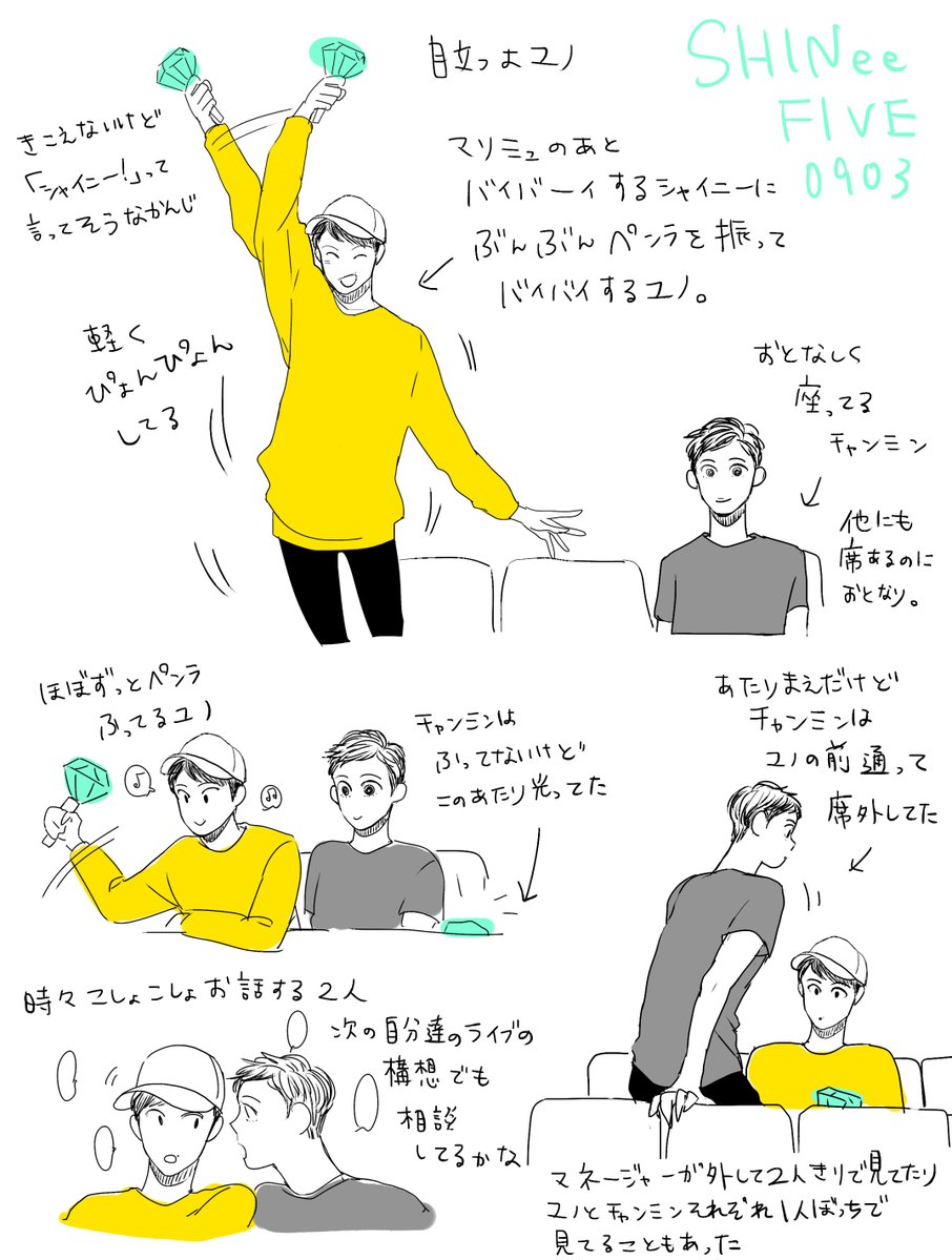 ペンラを一切振らず時折会話を交わしながら冷静にステージを見る様子に「(流石…あれが王者の貫禄と言うものか…)」て思ってたら、本編ラストでお辞儀するSHINeeに向かってユノが唐突に立ち上がり精一杯腕を伸ばしてペンラ振っててTT「ヾ(∵)よくやったー!見てたぞー!」て感じだっだTT