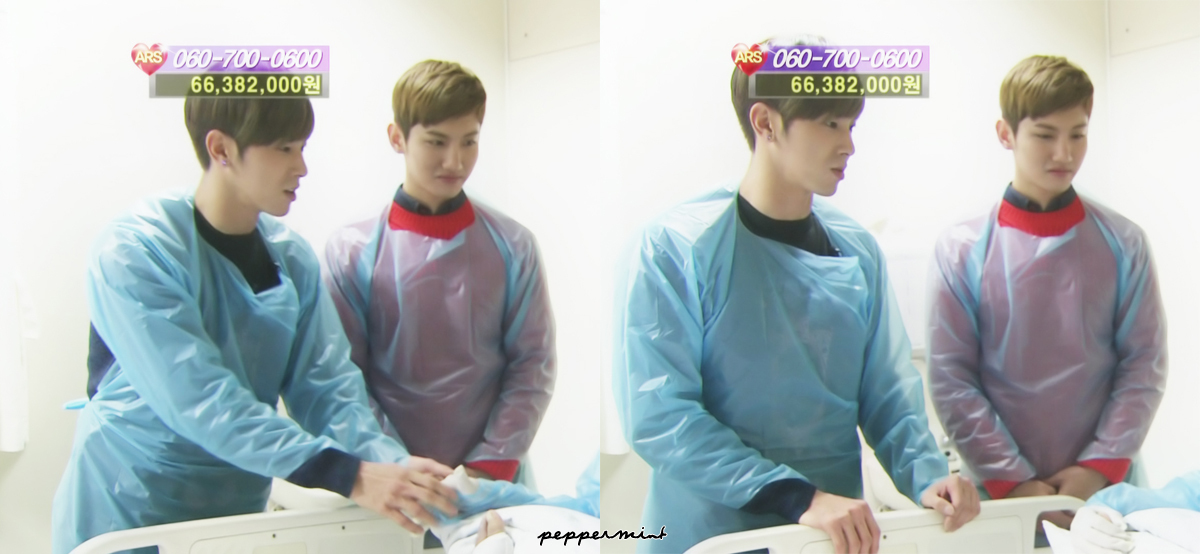 【番組の内容】肝硬変の病で入院し移植手術をしたチャンスクさんの病棟に訪れ家族を励ます東方神起