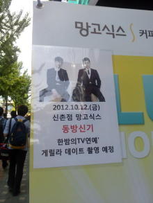 東方神起2012.10/12日金曜日新村(シンチョン)マンゴーシックスで一夜のTV演芸ゲリラデートするんです
