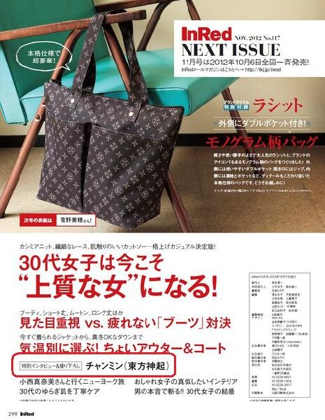 2012年11月号雑誌In Redチャンミン特別インタビュー予定(10/6発売) 「黄金を抱いて翔べ」に関するインタビューかな?