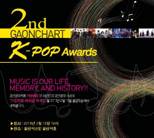 第2回加温チャートK-POPアワードは、過去1回と同様に、加温チャートで集計した正確かつ客観的なデータ(デジタル 音源、アルバム販売量)をベースに、過去2012年の一年間で最も多くの愛を受けた曲と歌手を選定し、表彰する。本賞の今年の歌手賞は、昨年1月から12月までの各月の音源1位と、各四半期ごとのアルバム1位など総16個チームに賞が与えられる。