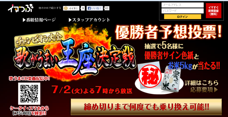 もし途中落ちるようなことがあれば、フジテレビさん側に苦情が殺到すると思います。その為にも優勝してあげたいなと。よろしくお願いいたします。