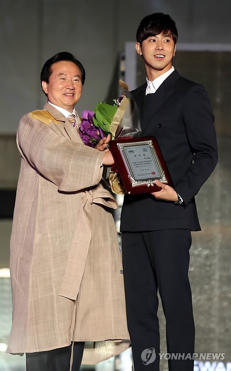 光州ビエンナーレ展示館で開かれた'2013光州デザインビエンナーレ開幕式ではユノが広報大使に委嘱されてカン·ウンテ光州市長とポーズをとっている。