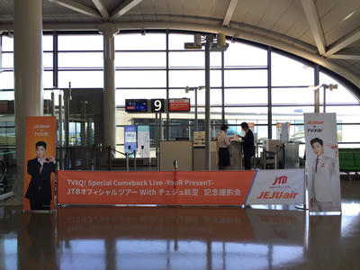 韓国のLCCチェジュ航空のイメージモデルを務める東方神起のファンミーティング「TVXQ! Special Comeback Live -YouR PresenT-」。JTBのオフィシャルツアー参加者によるユノ機の特別撮影会が成田空港で行われました。