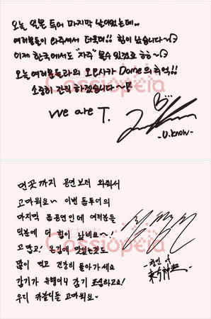 チャンミン:遠いところまでㅏコンサート見に来てくれてありがとうございます。今回ドームツアー最後のドーム公演だが、皆さんのお陰様でもっと力が出ましたね。ありがとう 美味しいものもたくさん食べて元気に帰ってください。風邪が流行だから風邪気を付けてください。我々のカブリー達ありがとう