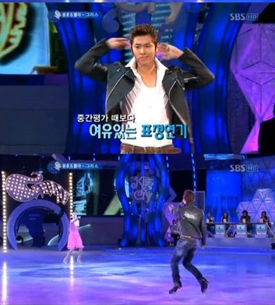 ユノは、パートナーのクラウディアミュラーとミュージカルギリシャの『サマーナイト』に合わせて幻想的なカップルのフィギュアスケートを披露した。 ユノは、ジョントラボルタの魅力そのままに再演して好評を受けたが、スケートの末尾に転落するミスを犯して惜しさを残した。