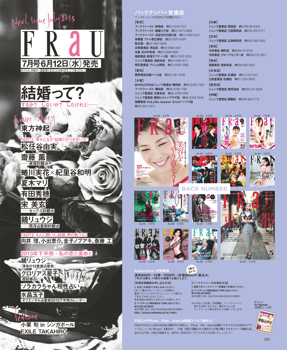 6/12発売FRAU 2013年7月号 ユノ&チャンミンの二人は久々で楽しみです!