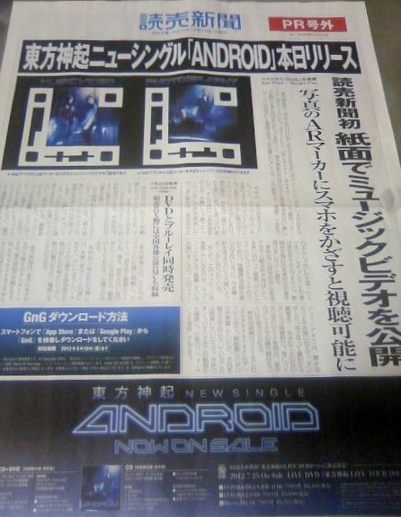紙面上のARマーカーにスマホをかざすと'ANDOROIDO'のMVが見れる!