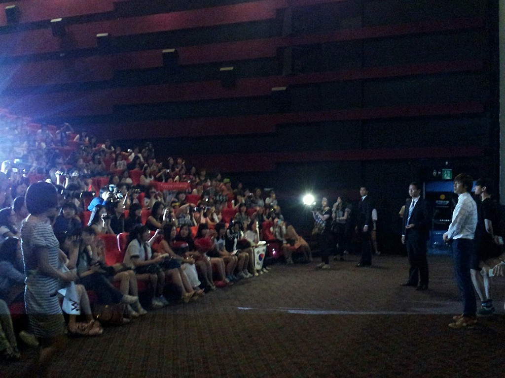 この日舞台挨拶には数多くの観客が東方神起を見るために人だかりを成し遂げた。 特に最高額のカメラ装備を入った少女ファンたちは東方神起の姿を現わすので(に)余念がない姿であった。