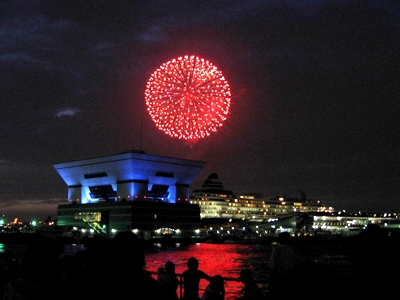 みなとみらい・臨港パークの沖合いで打ち上げられる、神奈川新聞花火大会