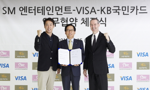 SMがグローバル企業VISA、KB国民カードとMOUを締結した。SMエンターテイメントは7月26日、グローバル企業VISA、KB国民カードとMOUを締結したと発表した。3社は25日午後SMエンターテイメント清潭社屋でSMキム·ヨンミン社長とVISAジャパンジェームス·ディクソン社長、KB国民カード最寄の社長が出席してエンターテイメントと金融産業の共同発展のための相互協力等に関する包括的業務提携契約を締結式行った。