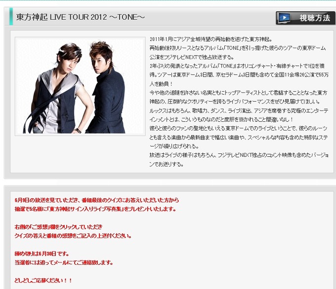 6/9フジTV NEXT夜8時-10時トンツアー東京ドーム公演放送!Bigeastのみなさん、こんにちは♪