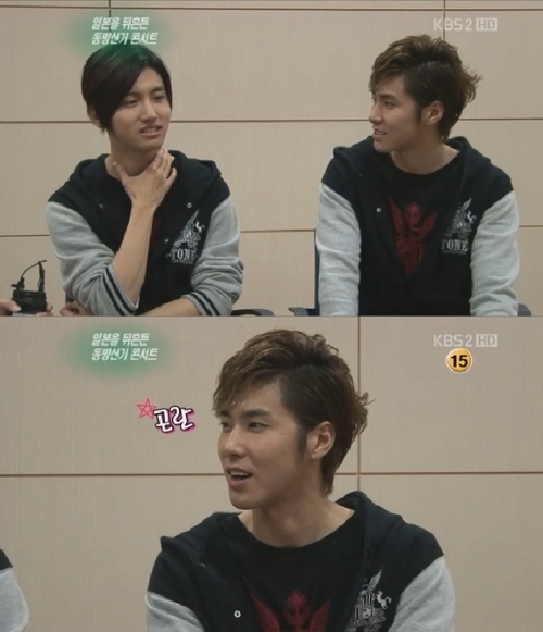 そうするうちにチャンミンはすぐ“9年目夫婦のようだという言葉をするから突然‘愛と戦争’というプロが思い出されますね。 愛憎相半ばする皆聞いて‘エヒュ~仇敵!’その一方で一緒に過ごす姿が出てくるでしょう。 男女関係ではないがそのようなプロを見ながら時々同感する時があります。”と答えて、そばにあったユンホは笑いをこらえることができなかった。