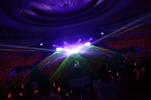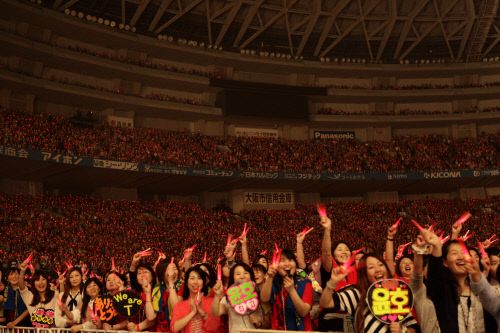 ▲'東方神起ライブ ツアー2012トン'フィナーレ公演が4月21~23日日本、大阪京セラドームで盛況裡に繰り広げられた。 京セラドームをいっぱい埋めたまま歓呼する観客ら.