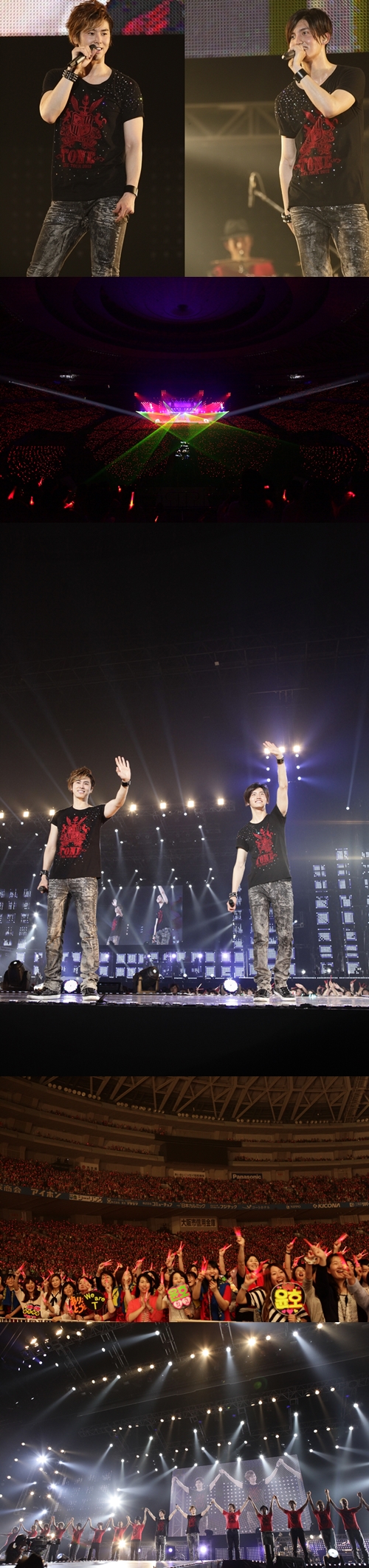 東方神起は、 4月21日から23日まで日本の大阪にある大規模な会場京セラドームで13万5千(3回)観客の熱狂的な歓声の応援の中で"東方神起LIVE TOUR 2012〜TONE〜"のフィナーレ公演を華やかに仕上げました。特に去る1月18日横浜初公演を皮切りに、計26回、97日間開かれた'東方神起LIVE TOUR 2012〜TONE〜 "が達成した55万人の観客動員は、韓国歌手史上最多観客記録であり、日本の現地TOPアーティストたちも立てる難しい記録であるだけに、日本現地でも大きな話題を集めた。