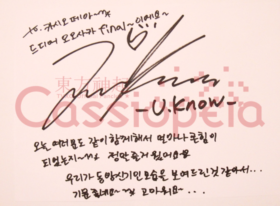 最後のアンコール曲 "ソムバディツーラブ"まですべて終えた東方神起はファンの熱烈な反応に感謝しながら、 "2,3階の客席は、舞台との距離は遠かったが、あなたが私達東方神起を考えてくださる心は私達の胸にワダトアトました。これからも素敵な姿見せて差し上げる東方神起になります "と胸ジーンとしたクロージングコメントを伝えた。