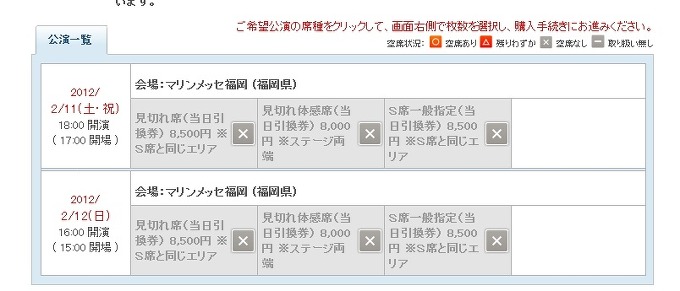 東方神起 LIVE TOUR 2012 ~TONE~ 福岡マリンメッセ公演 追加S席一般指定&見切れ席&見切れ体感席(当日引換券)