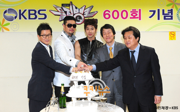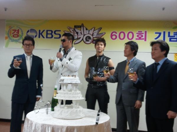 生放送直前には、KBSー菩捩アナウンサーの司会で、600回祝賀レセプションの行事が開いた。 ジョンジングク芸能局長は、"グローバル化に歩調を合わせて54カ国に生中継で放送している。 来る7月には76カ国に増やし、ケイパブ(K - POP)を全世界に知らせることにヒムスゲトダ"とし、"大韓民国で最も公平な音楽番組になるように努力していきたい"と抱負を明らかにした。 韓国芸能製作者協会長アンジョンデ、歌手協会会長テジナも出席し、『ミュージックバンク』600回を記念した。