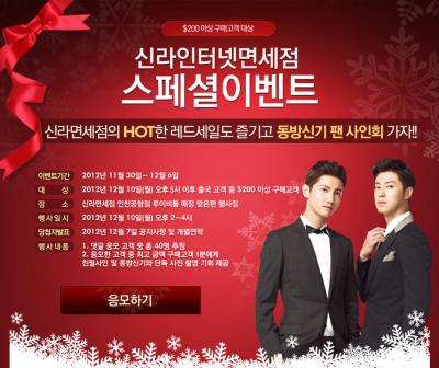 仁川(インチョン)空港免税店で購入した内外国人顧客中先着順90人を対象に進行されて、そのうちの2人には東方神起メンバーらとフォトタイムを持つことができる機会が与えられる。 この他に70個の売り場中1ヶ所を訪問する計画だ。